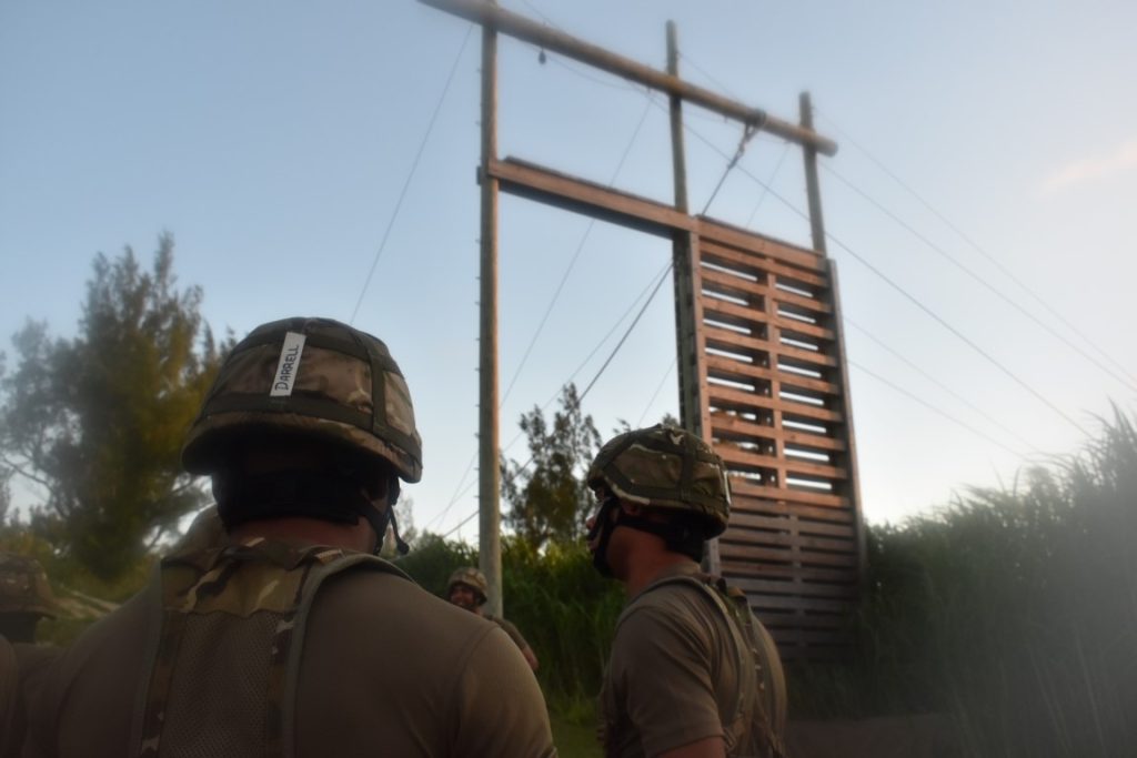 New recruits to the Royal Bermuda Regiment today (SUN) marked the halfway mark of their basic training with a grueling race around the Warwick Camp assault course.