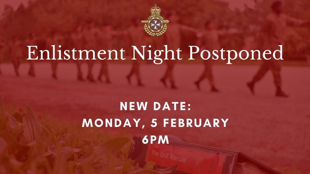 Severe weather this afternoon has necessitated the postponement of the Royal Bermuda Regiment Enlistment Night scheduled for this evening. The event will now be held on Monday, February 5th at […]